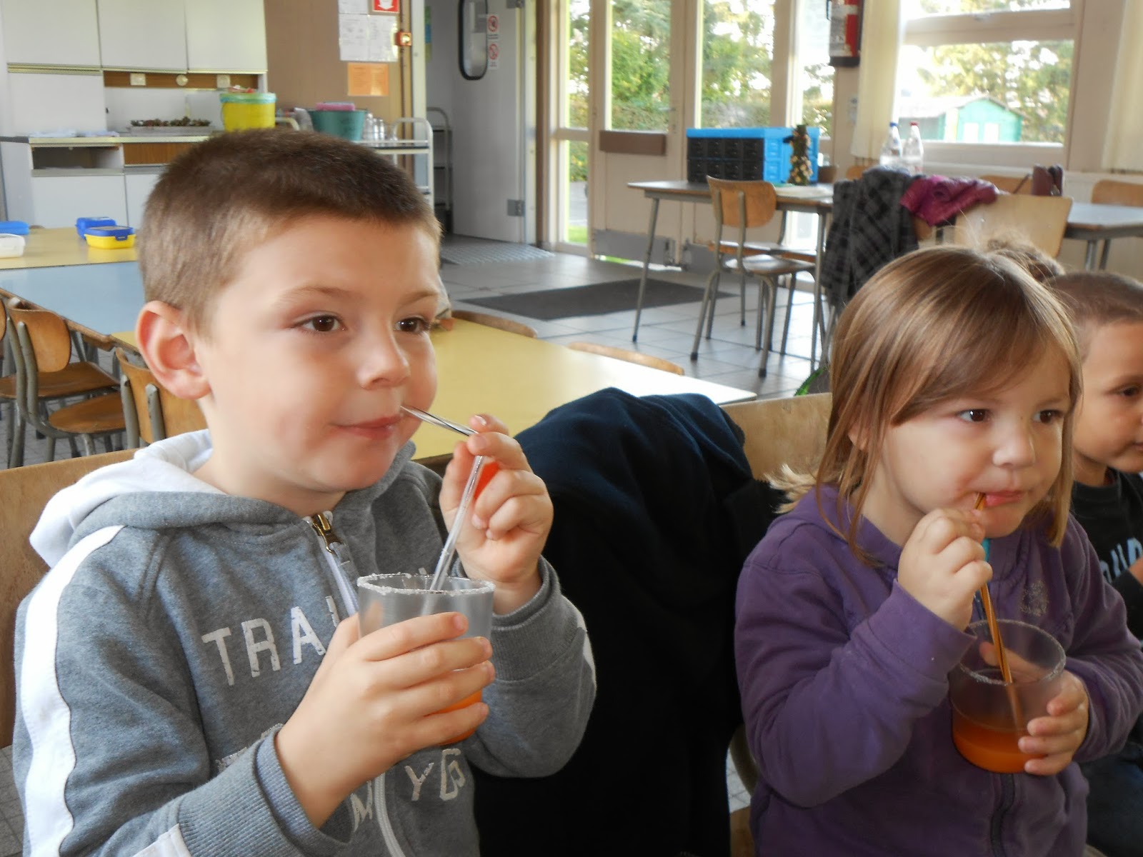 We starten met een aperitief école ,oranje worteltjes geschild door de kleuters!